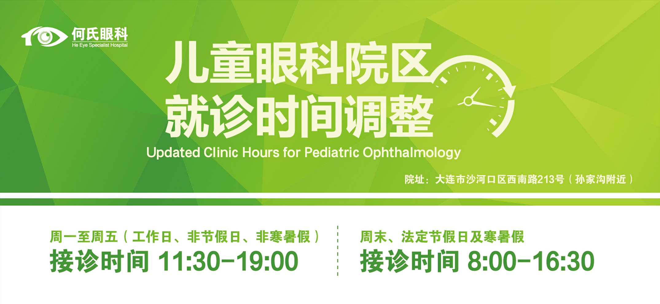 儿童眼科院区——大连市沙河口区西南路213-1号(孙家沟北行200米)